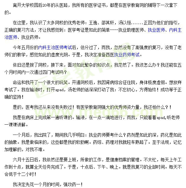 - · 三年执业药师备考路,有苦有乐,感谢医学教育网!