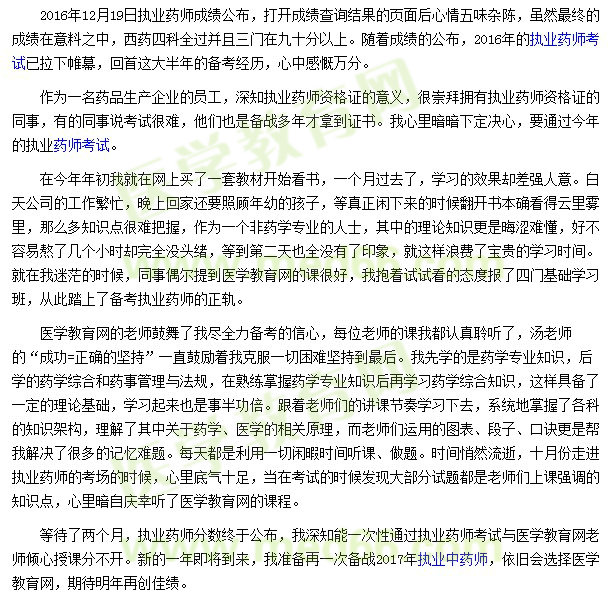 - · 三年执业药师备考路,有苦有乐,感谢医学教育网!