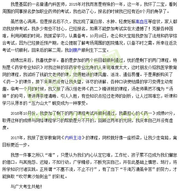 - · 三年执业药师备考路,有苦有乐,感谢医学教育网!