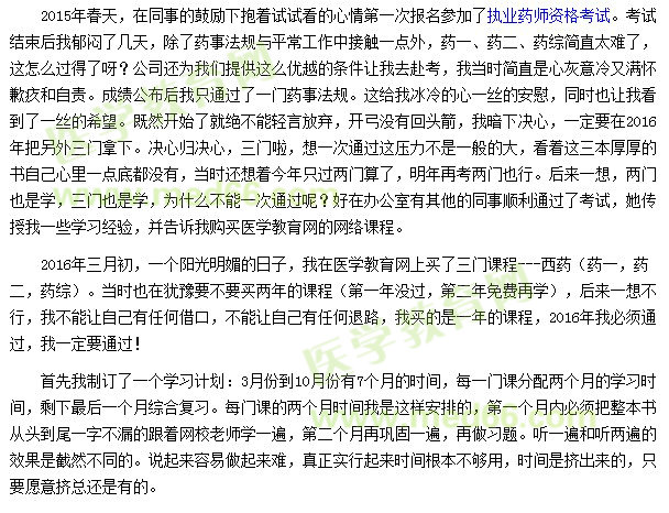 - · 三年执业药师备考路,有苦有乐,感谢医学教育网!