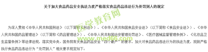 2018年年初,食品药品监管总局公安部印发关于加大食品药品安全执法力度严格落实食品药品违法行为处罚到人的规定的通知,其中指出个人从事食品药品违法行为的,依法追究个人法律责任。单位从事食品药品违法行为的,除对单位进行处罚外,还要依法追究单位直接负责的主管人员和其他直接责任人员责任!