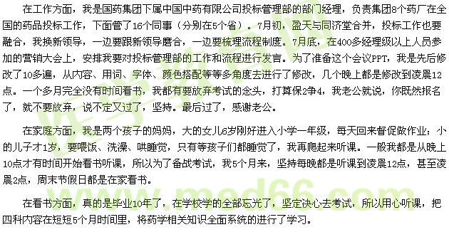 在2013年的医考之路大型征文活动中,医学教育网涌现了不少精彩的文章,下面让我们来一起看看吧。我的医考之路--毕业10年一次通过执业药师的经验分享,网校执业药师学员(学员代码:xhf***):
