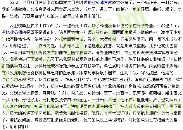 结果是成功的,美好的,特别是对我这样年届50的老考生,这里把我一些自认为成功的做法讲讲,希望考生朋友借鉴一二: