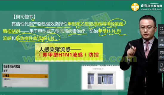 (2)吸收后代谢成活性产物而发挥抗甲型和乙型流感病毒的前体药物是:奥司他韦