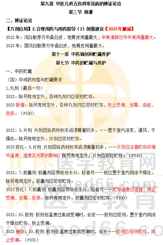 2023年执业药师《中药学综合知识与技能》教材变动情况汇总(完整版)↓↓↓