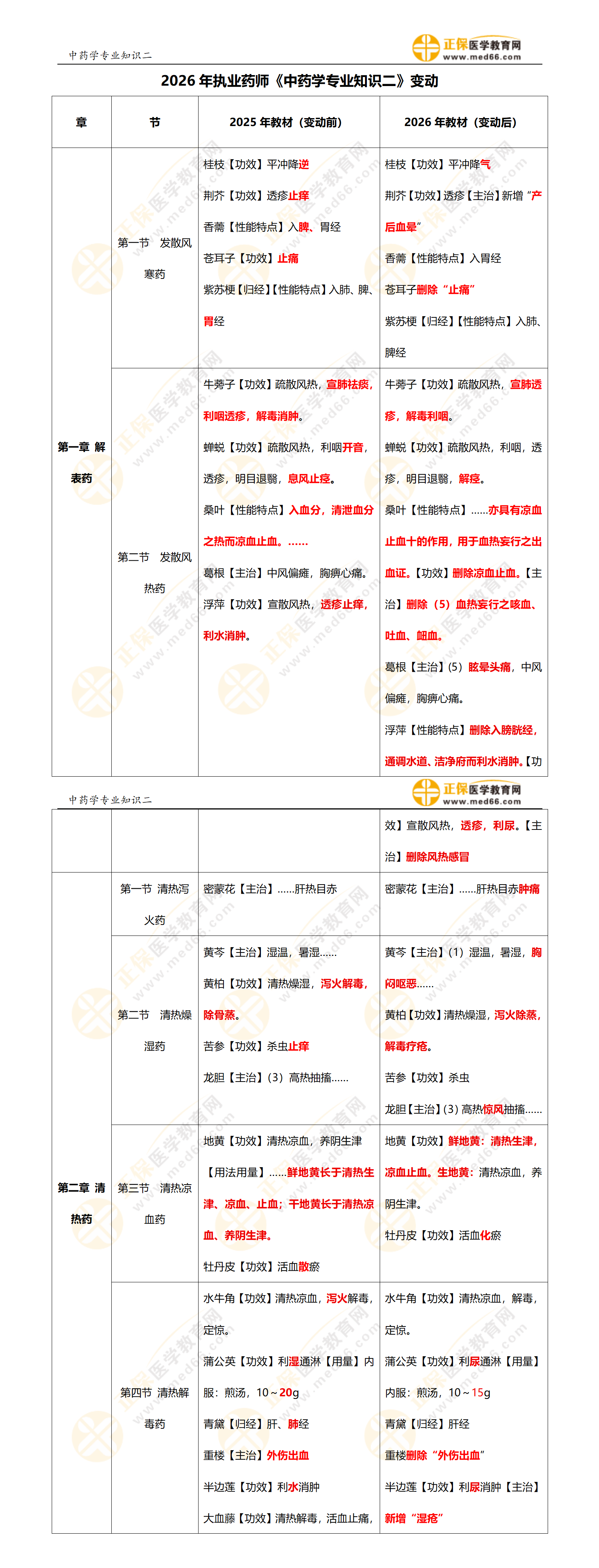 ●功效的改动: 如桂枝的“平冲降逆”改为了“平冲降气”;牛蒡子的“疏散风热,宣肺祛痰,利咽透疹,解毒消肿”改为了“疏散风热,宣肺透疹,解毒利咽”。
