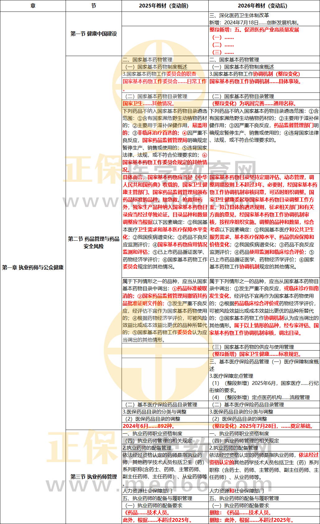 《药事管理与法规》2026年最新出炉的教材来啦![医学教育网]将教材与2025年教材进行了认真细致地比对,整体变动率约20%。