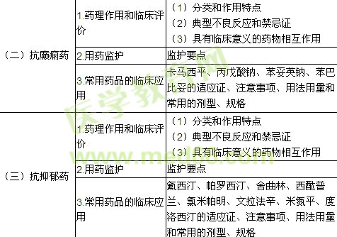 | (二)抗痛风药 | 1.药理作用和临床评价 | (1)分类和作用特点 (2)典型不良反应和禁忌证 (3)具有临床意义的药物相互作用 |
