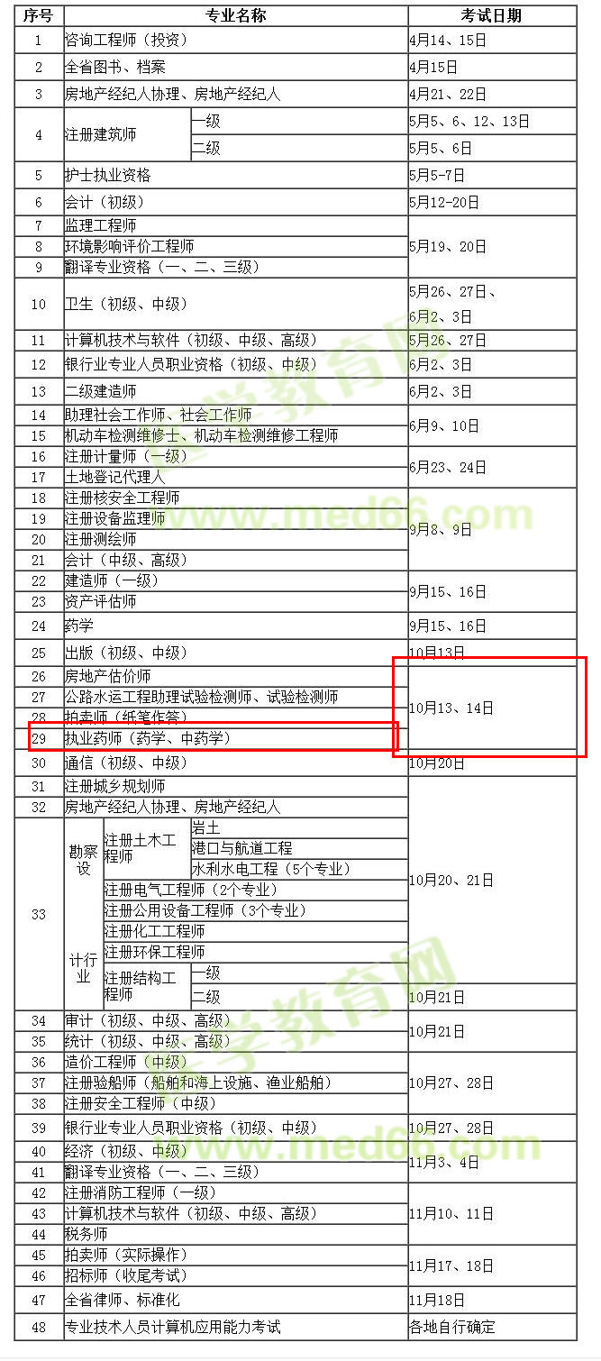 根据安徽省人事考试网发布的《2018年度专业技术人员资格考试工作计划》我们可以得知。2018年安徽省执业药师考试时间为:10月13、14日。