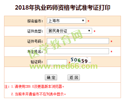 根据中国人事考试网最新动态,2018年上海市执业药师准考证打印入口已开通,请登录您的个人信息及时打印准考证!