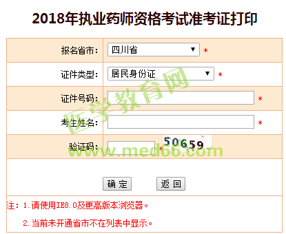 根据中国人事考试网最新动态,四川省2018年执业药师准考证打印入口已开通,2018年四川省执业药师准考证打印入口已开通,考生可以点击下方链接进入中国人事考试网执业药师准考证打印入口输入相关个人信息打印准考证。