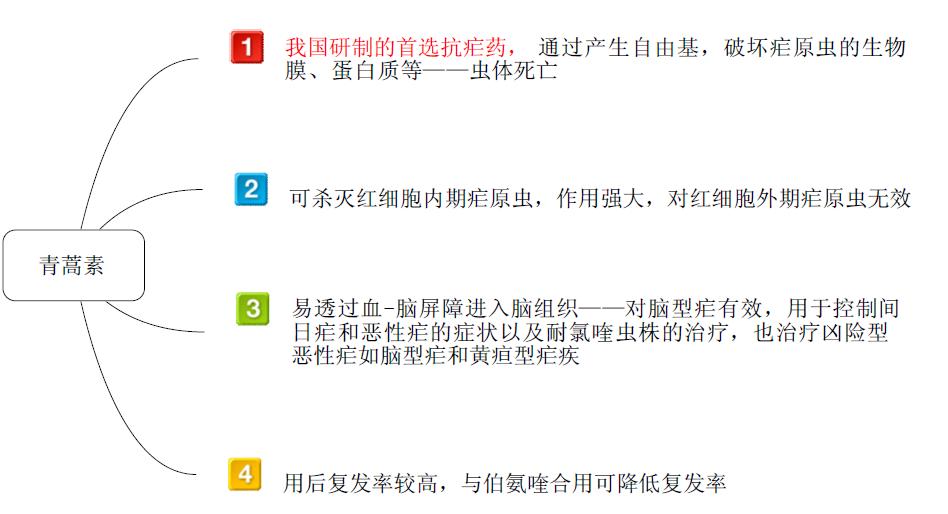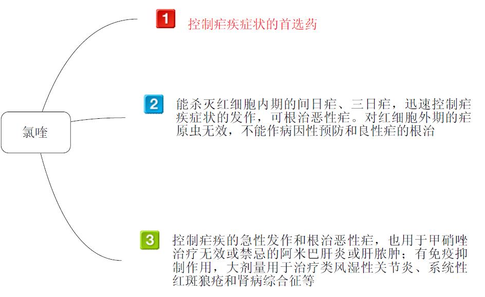 【解答】用于控制症状发作的药物——氯喹、青蒿素、奎宁