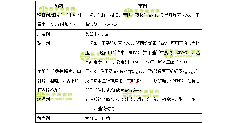 片剂常用辅料如下表