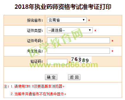 2018年云南省执业药师准考证打印入口: