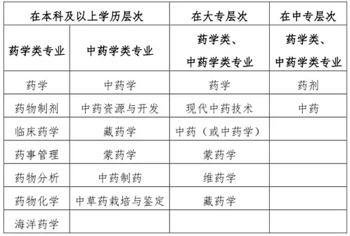 (2)取得药学类、中药学类专业大学本科学历或学士学位,在药学或中药学岗位工作满2年;