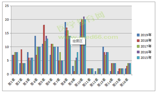 通过对试题的梳理,2015-2019年的各章节分值对比如下: