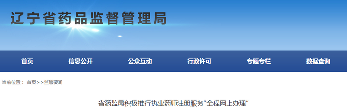 辽宁省药品监督管理局发布《省药监局积极推行执业药师注册服务“全程网上办理”》(以下简称《通知》),该通知中表明,自2020年2月7日起,全省推行执业药师注册网上全程办理!提升辽宁省执业药师注册便利性,全面实现执业药师注册工作“最多跑一次”,大大减少人员跑动次数!