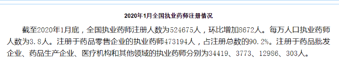 2020年1月执业药师注册人数环比增加8672人,我们可以看到,过往每月执业药师注册人数环比增加均在3000人左右。执业药师2020年1月注册人数环比提升近2倍!