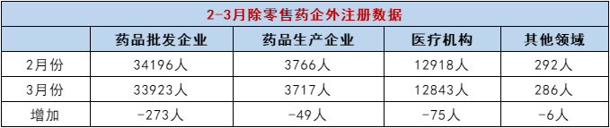 在3月份,其他机构/领域的注册人数比二月份的注册人数来说都有所减少的,唯有注册在药品零售其他的执业药师人数是上升的,比2月份的471289人,是增加了1166人。