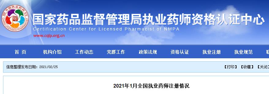 近日,国家药品监督管理局执业药师资格认证中心公开2021年1月全国执业药师注册情况!详情如下,考生查看!