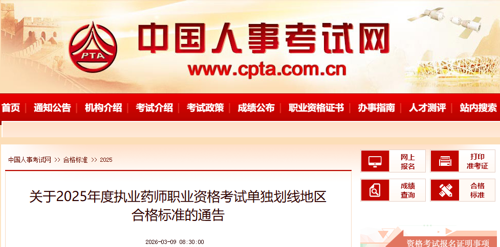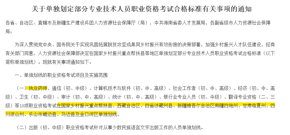 根据《人力资源社会保障部办公厅关于单独划定部分专业技术人员职业资格考试合格标准有关事项的通知》(人社厅发〔2022〕25号),经有关部门授权,现将2025年度执业药师职业资格考试单独划线地区合格标准通告如下: