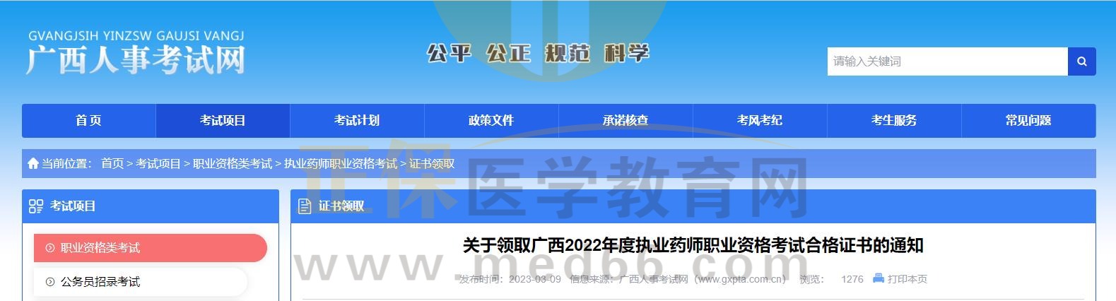 以上就是“关于领取广西2022年度执业药师职业资格考试合格证书的通知”的全部内容,希望对您有帮助!更多执业药师考试动态,尽在医学教育网!