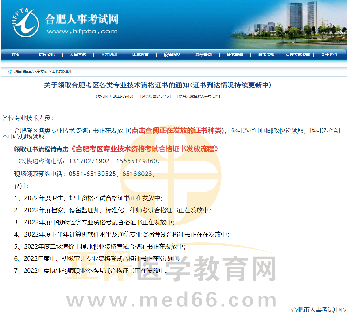 以上就是“关于领取合肥考区2022年执业药师资格证书的通知”的全部内容,希望对您有帮助!更多执业药师考试动态,尽在医学教育网!