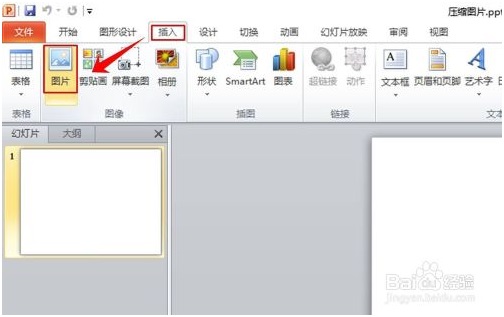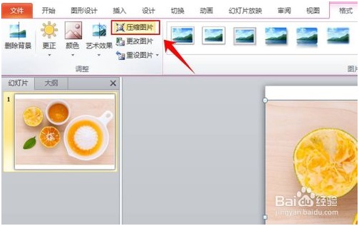 6.双击PPT中的图片,在PPT工具栏中选择【压缩图片】。