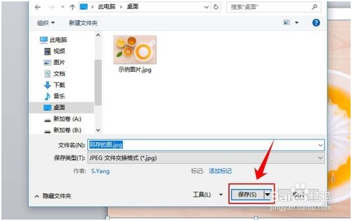 4.这时又会弹出一个对话窗口,在窗口中选择好图片的存储路径,在窗口下方点击【保存】。