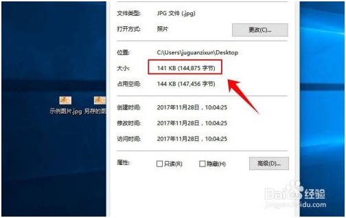 5.按照步骤1的方法查看压缩后的图片大小变成了141KB,图片被压缩了近20%,效果比较明显,但是如果图片还没有压缩到理想的大小又应该怎么办呢?请继续往下看。