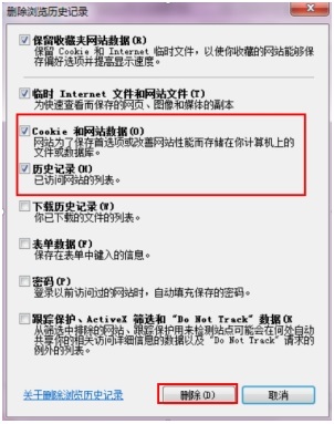 3.勾选【Cookie 和网站数据】及【历史记录】项,点击【删除】按钮。