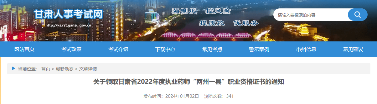 甘肃省2022年度执业药师“两州一县”职业资格证书从即日起开始发放,证书发放开通“邮寄办、网上办”的不见面服务,建议考生申请邮寄办理。现将有关事项通知如下: