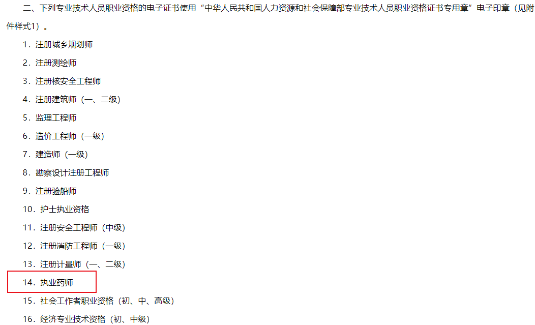 参考依据:中华人民共和国自然资源部2023年5月16日发布的《人力资源社会保障部办公厅关于推行专业技术人员职业资格电子证书的通知》,其中明确说明执业药师考试电子证书与纸质证书具有同等法律效益。