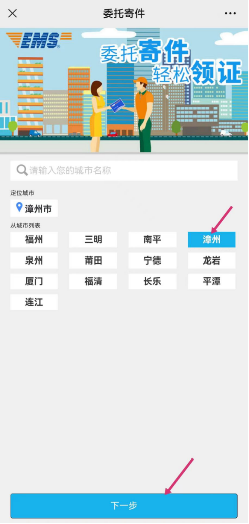 步骤三:选择“漳州”后,按下一步