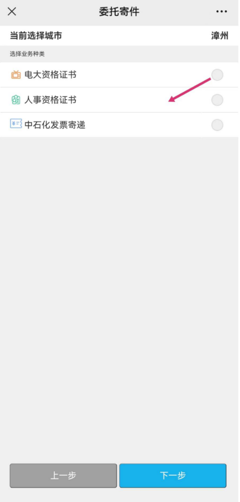 步骤四:选择“人事资格证书”后,按下一步