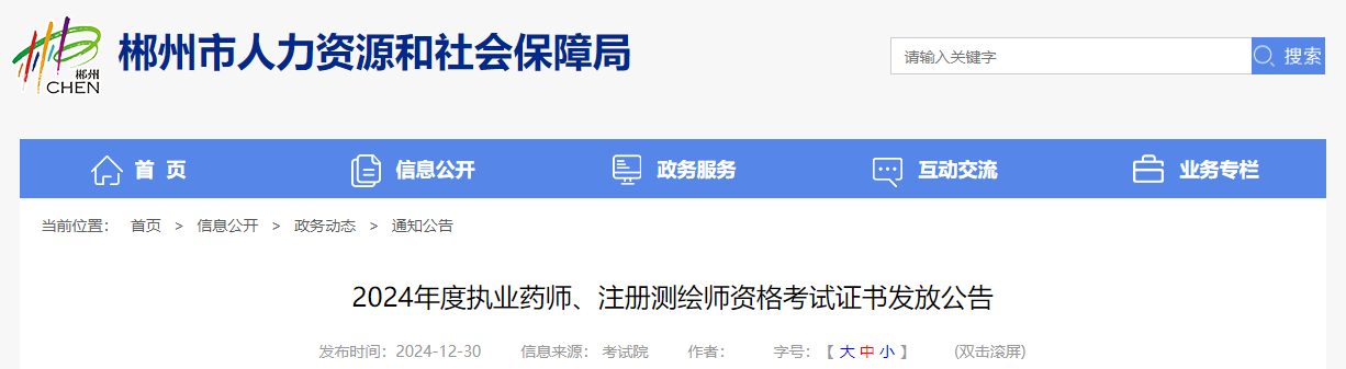 2024年度执业药师、注册测绘师资格考试证书于2024年12月30日起发放。为切实提高考试服务水平,方便广大考生,上述职业资格证书除继续提供现场领取证书服务外,同时提供证书邮寄网上申请服务,考生可自主选择。