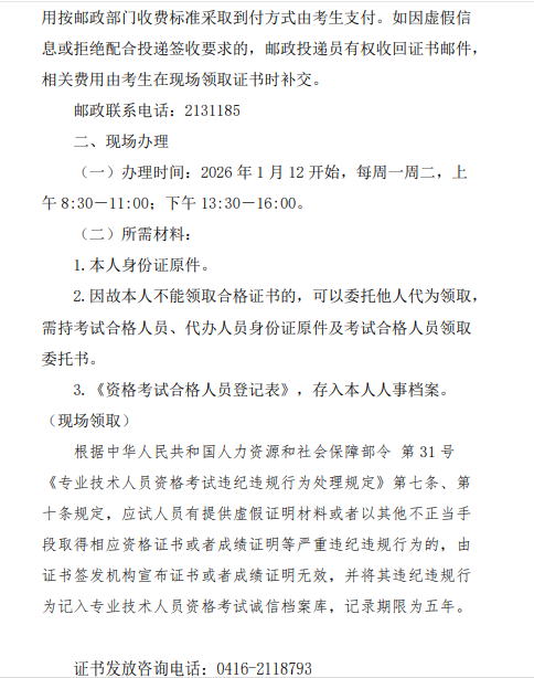 证书领取地址:锦州市凌河区南京路五段恒升现代城13甲。