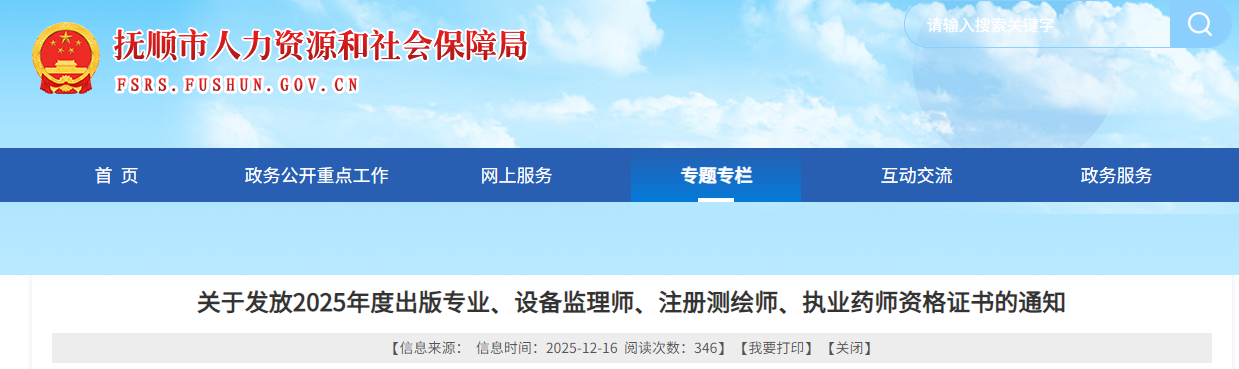 - · 【辽宁沈阳】关于发放2025年度执业药师职业资格考试合格证书的通知