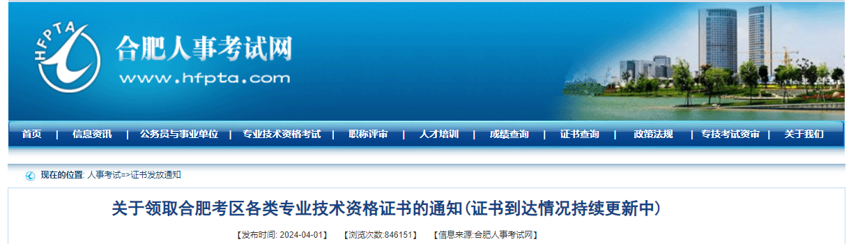 领取证书流程请点击《合肥考区专业技术资格考试合格证书发放流程》