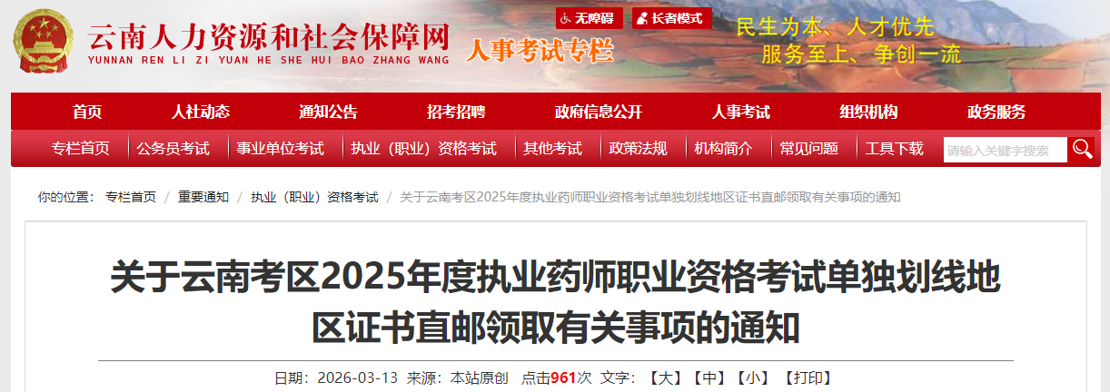 根据《2025年度执业药师职业资格考试单独划线地区成绩合格人员资格核查温馨提醒》,云南考区2025年度执业药师职业资格考试单独划线地区考后资格核查工作已于近期开展。现将证书直邮领取事宜通知如下: