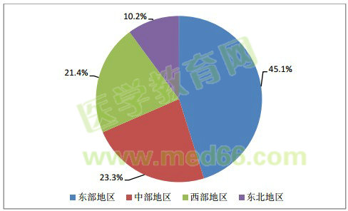 执业药师按区域分布情况:东部地区151338人,中部地区78167人,西部地区71836人,东北地区34014人,分别占注册总数45.1%、23.3%、21.4%、10.2%(见图4)。
