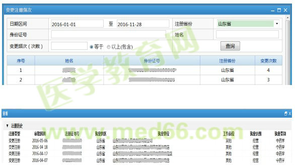 5.单击“变更注册频次”,输入查询条件,筛选多频次变更人员信息。