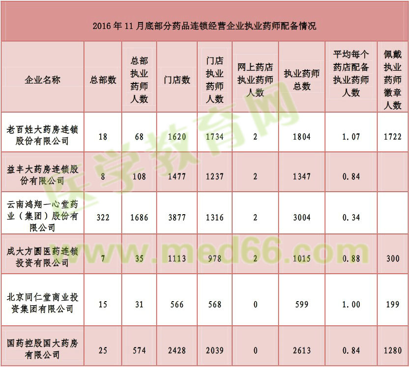 部分药品连锁经营企业执业药师配备情况见附表 5。