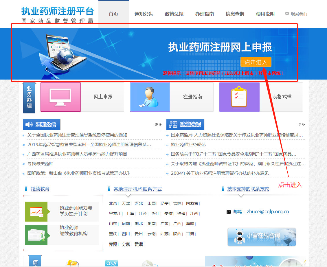 点击“执业药师注册网上申报”(网址:http://zyys.sfda.gov.cn/);