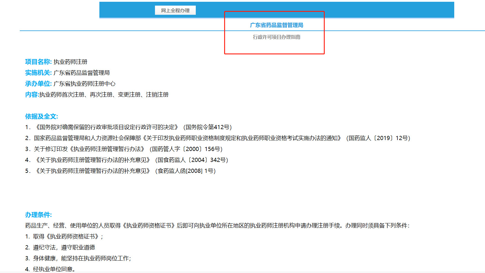 进入【办理指南】页面,详细看完后点击页面最下面【网上全程办理】(以广东为例)
