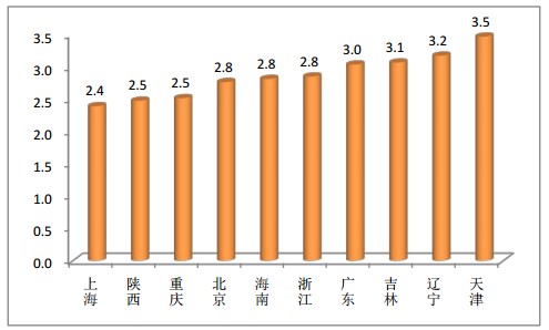 每万人口执业药师前十位的省(市):天津、辽宁、吉林、广东、浙江、海南、北京、重庆、陕西、上海。