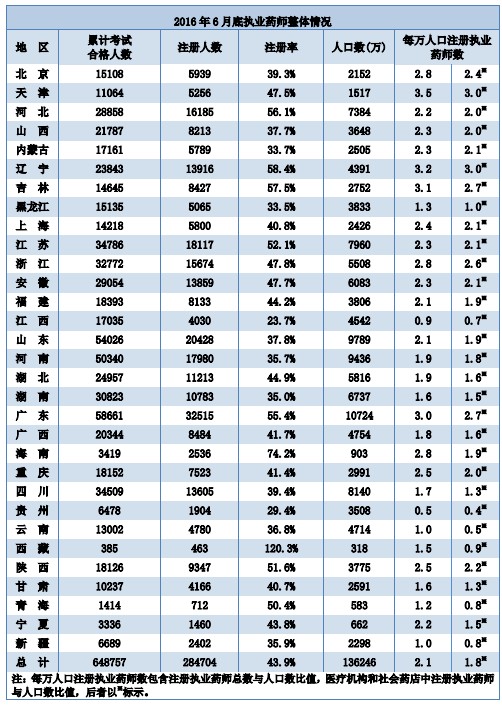 截至2016年6月30日,执业药师注册动态情况如下: