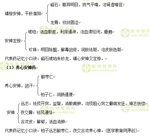 解析:(1)朱砂甘寒清解,质重镇怯,力强有毒,专入心经。善重镇安神,为治心火亢盛诸证之要药;能清热解毒,为治热毒疮肿、咽痛、口疮所常用。