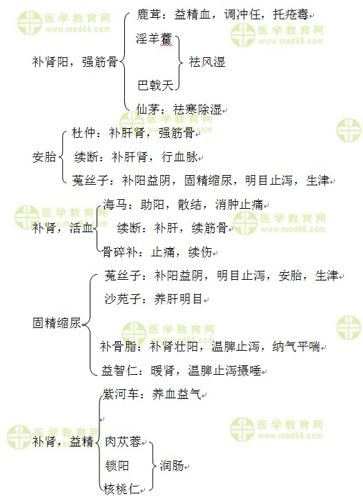 代表药记忆小口诀:马鹿羊狗菟蛤虫,戟茅锁阳肉苁蓉,益智杜断骨碎补,沙苑核车女胞宫。【医学教育网原创】
