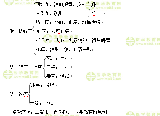 解析:桃仁的功效是:活血祛瘀,润肠通便,止咳平喘。苏木的功效是:活血祛瘀,消肿止痛。[医学教育网原创]